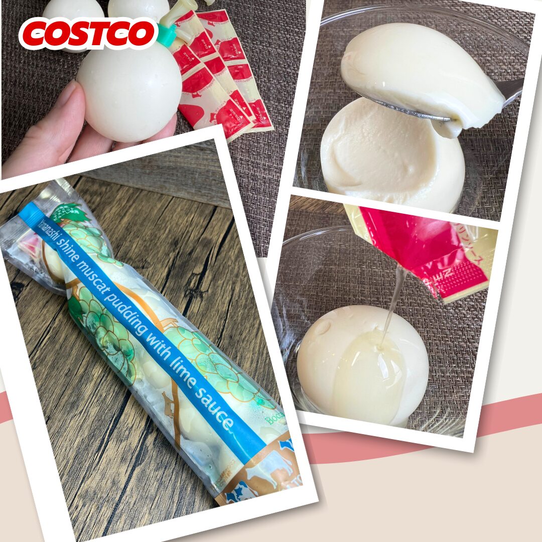 コストコで人気の牧家(ぼっか)プリンから、期間限定の「シャインマスカットミックスプリン」が登場。風船のようなパッケージが特徴です。山梨県産シャインマスカットを使った濃厚なミルクプリンに、酸味の効いたライムソースをかけるとぶっ飛び級の美味しさ!さわやかな風味と上品な甘さが魅力ですよ。